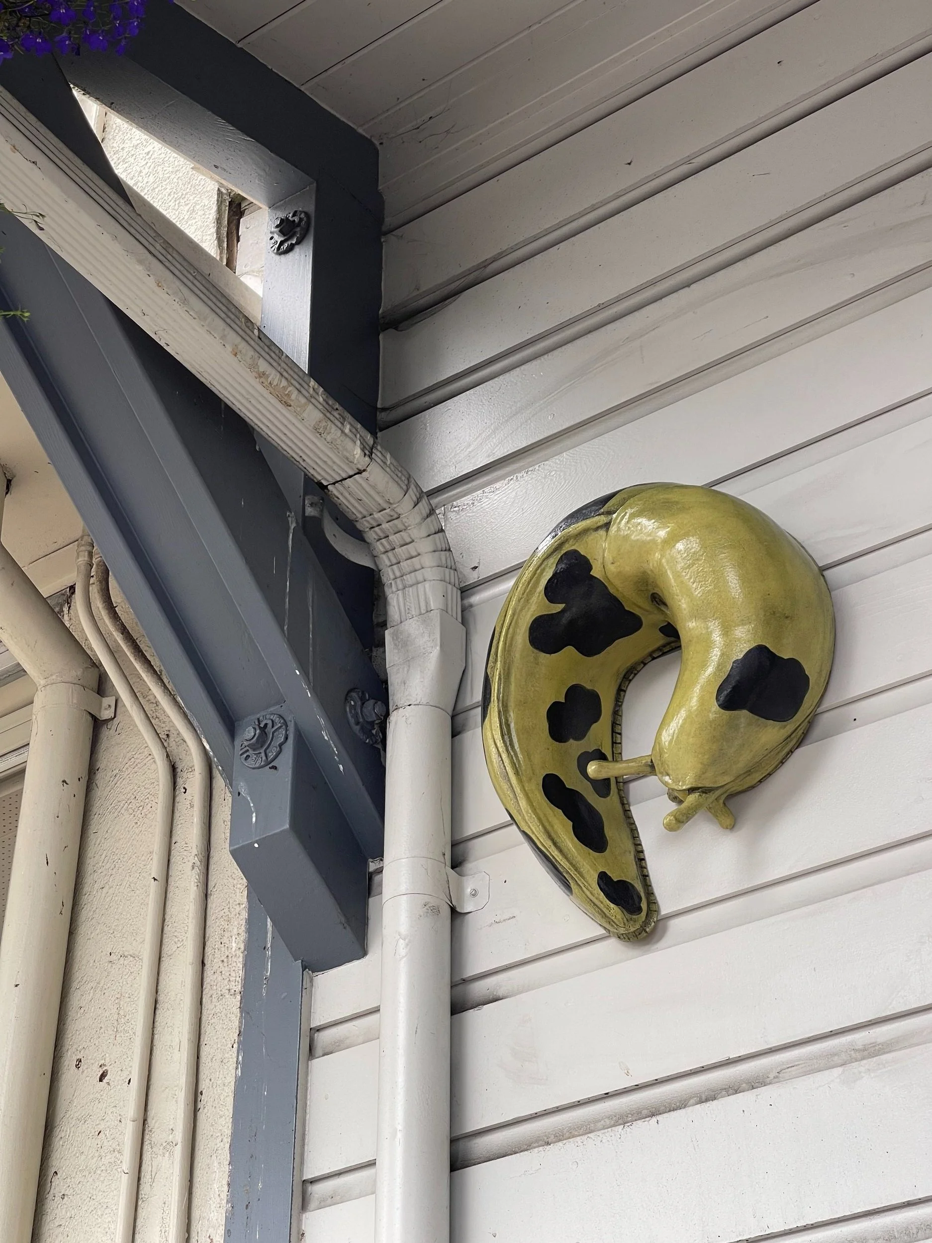 Summer of 2024, Shannon Sullivan and Jessica Swan, participated in a vibrant public art project as part of the Eureka Street Art Festival —installing three-foot-long ceramic banana slugs on walls across the city! Each a one-of-a-kind sculpture hand made by the ceramic art duo. A total of 16 slugs now adorn 13 buildings throughout town.